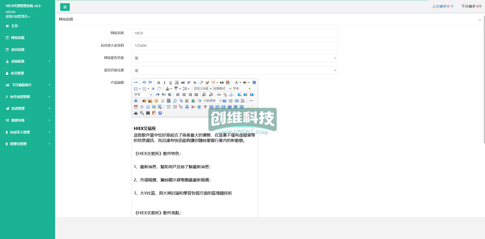 前端多语言支持:中文、英文、中文繁体;支持跟单跟投、自带机器人。