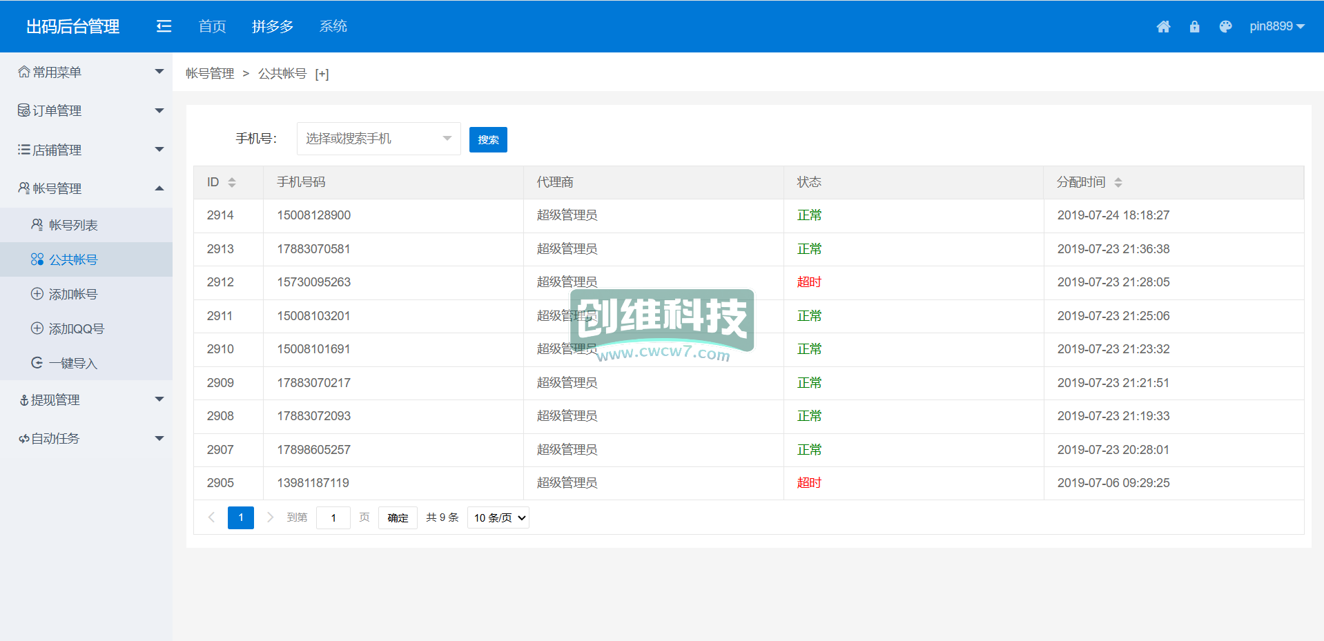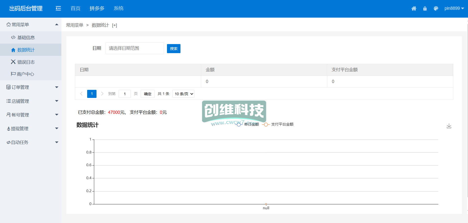 本系统为拼多多出码通道定制化支付解决方案,集成PC端实时监控、授权端程序与自动化运营模块。系统支持多账号轮询出码,实现支付流程全自动化管理,适用于四方支付业务场景。