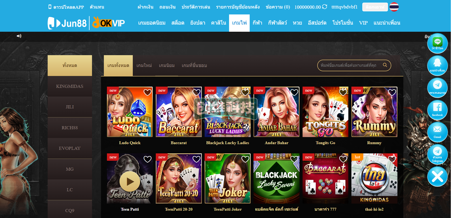 纸牌游戏:Jun88 纸牌游戏专区为玩家带来一系列精彩绝伦的佳作,例如南方天伦、Phom、Mau Binh、Sam Loc、Xi To、二十一点……从传统民间游戏到现代欧洲游戏,Jun88 纸牌游戏应有尽有,您可以轻松选择任何风格的佳作。