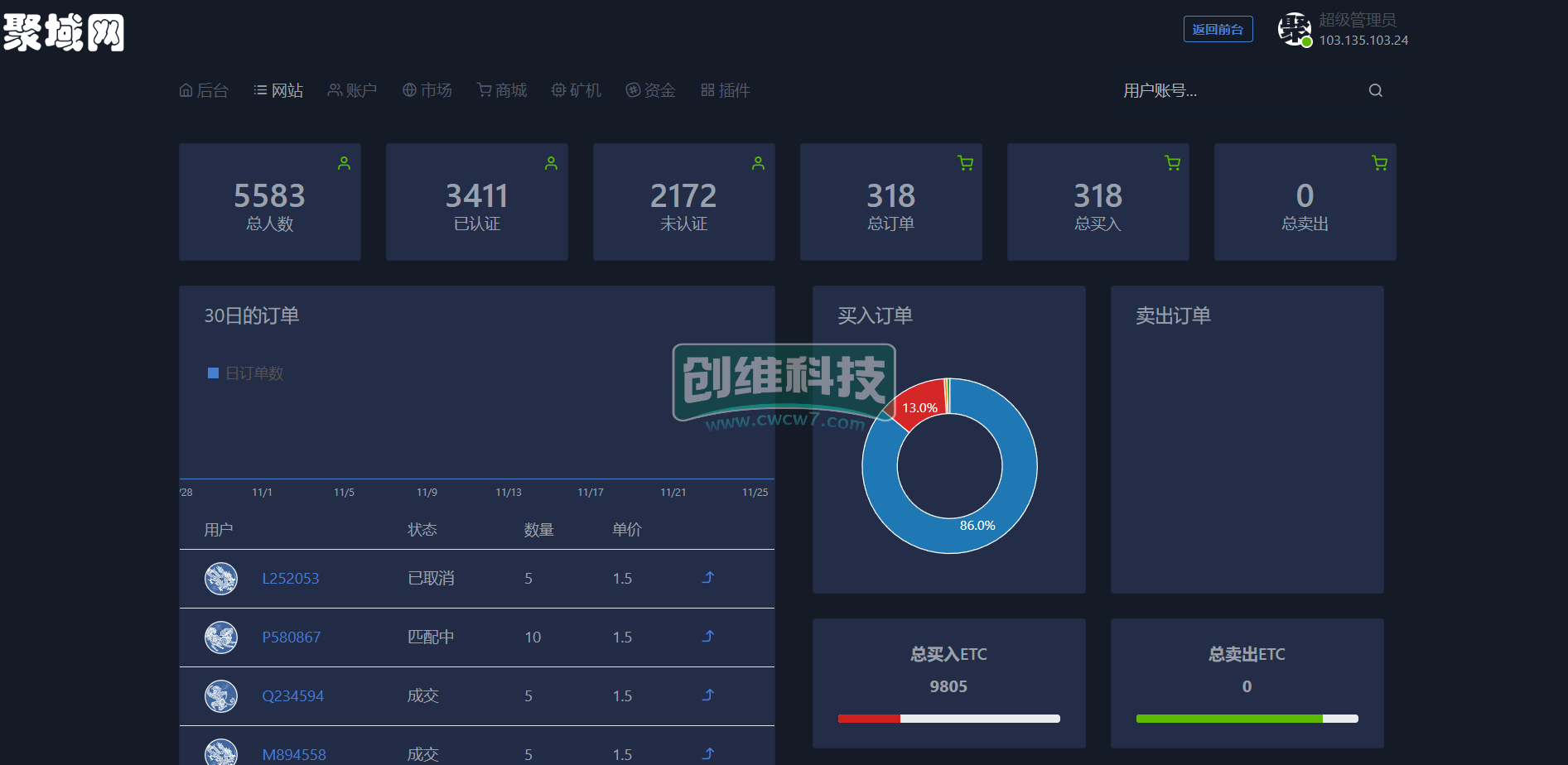 基于ThinkPHP5框架开发的创新型区块链挖矿平台,集ETC智能合约、点对点交易、云矿机、商城众筹等多功能于一体,采用全新UI设计,支持PC与WAP端自适应,为运营者提供完整的区块链数字经济生态解决方案。