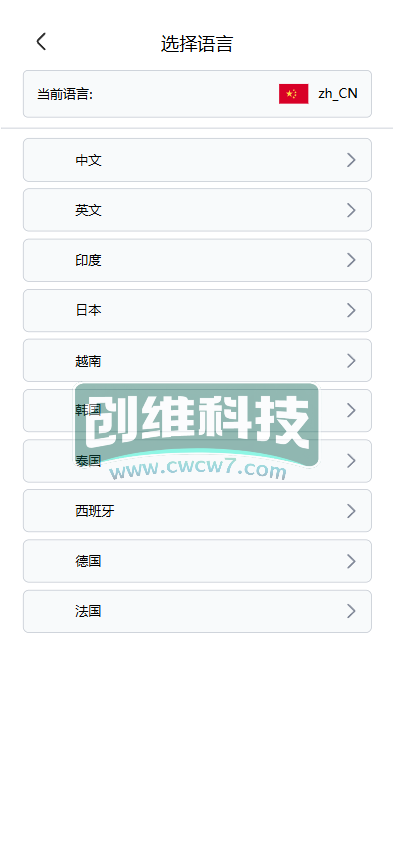 8、语言切换(支持全球任意国家语言,可增加或删减)
