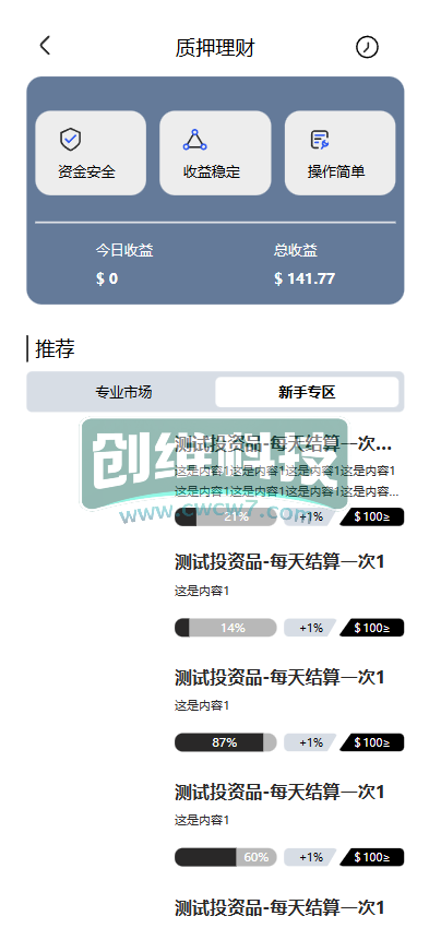 4、质押理财(完全自定义量化产品、名称、利率、周期、详情)