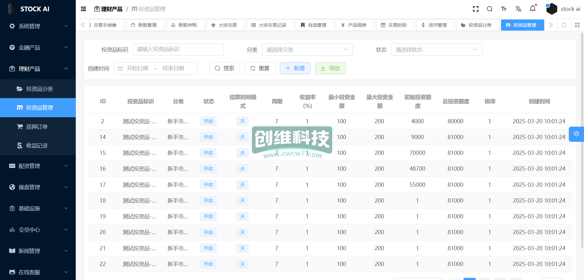 18、金融产品(这里是增加平台产品部分,手动增加后需要代码里面增加一次,不懂可以联系管理员)