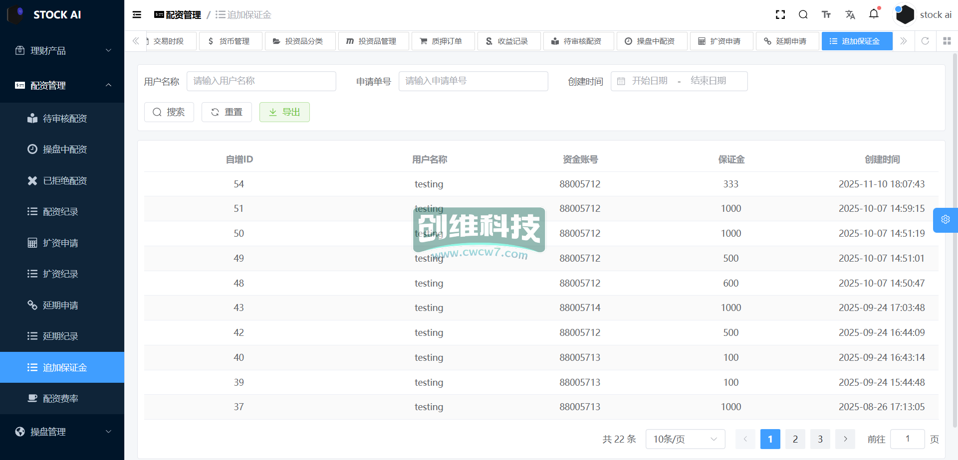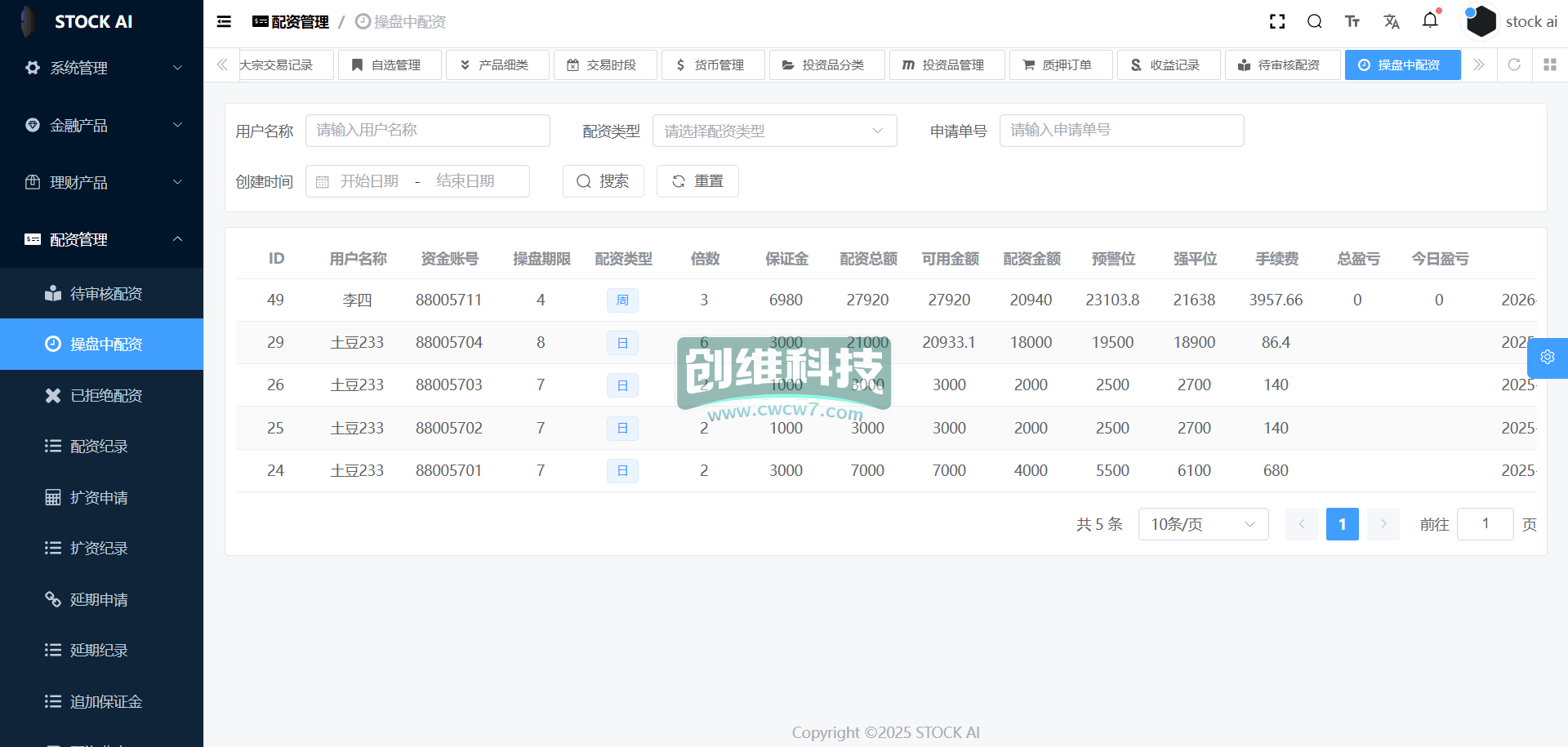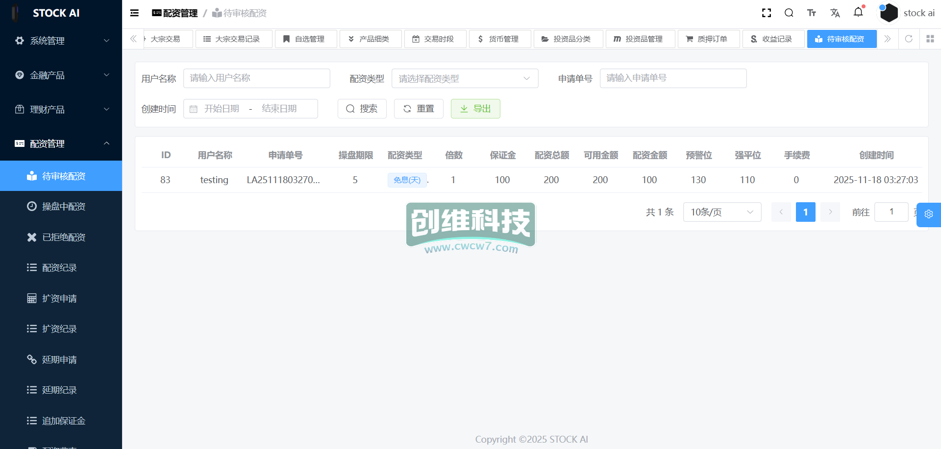 2、配资申请(根据用户自定义申请配资金额、倍数、周期)
