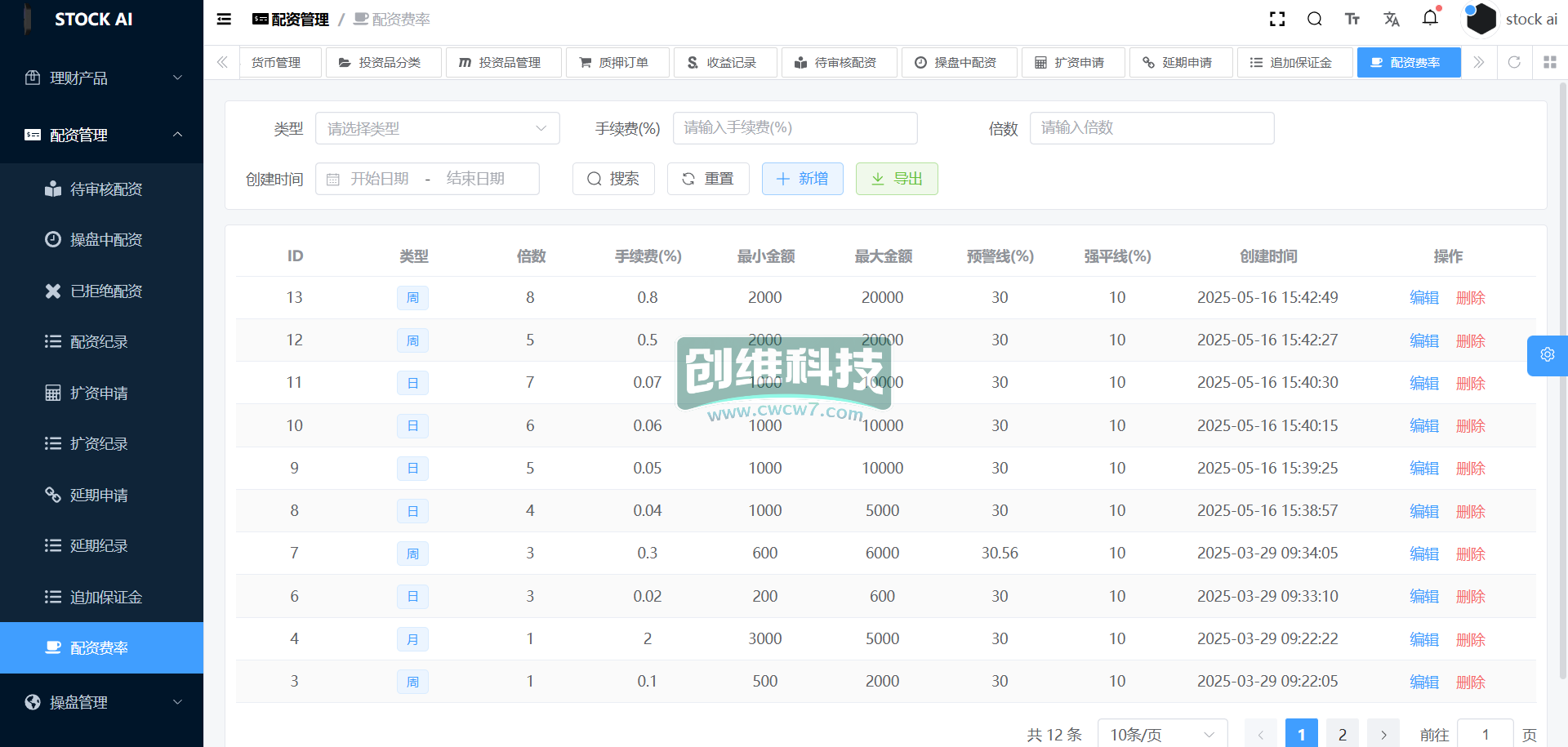 19、配置(编辑产品的购买周期、金额区间、手续费等等)